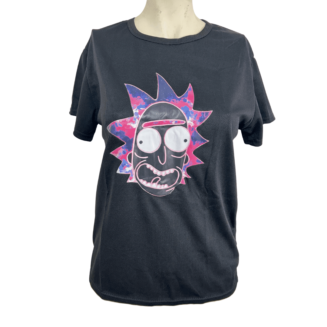 חולצת לייקרה שרוול קצר עם פרצוף של ריק סנצ'ז צבעוני .