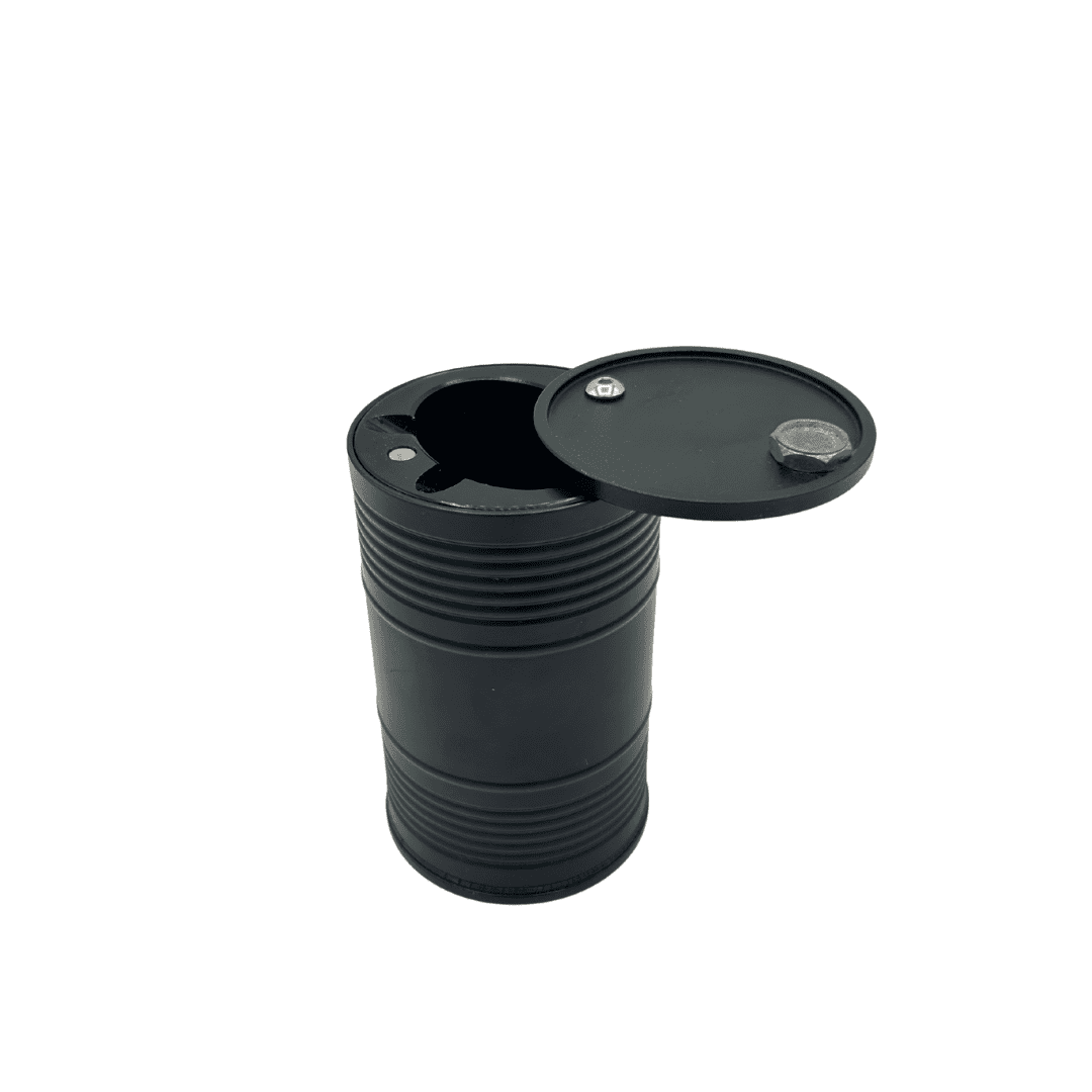 מאפרת מתכת בצורת חבית שמן עם מכסה מובנה