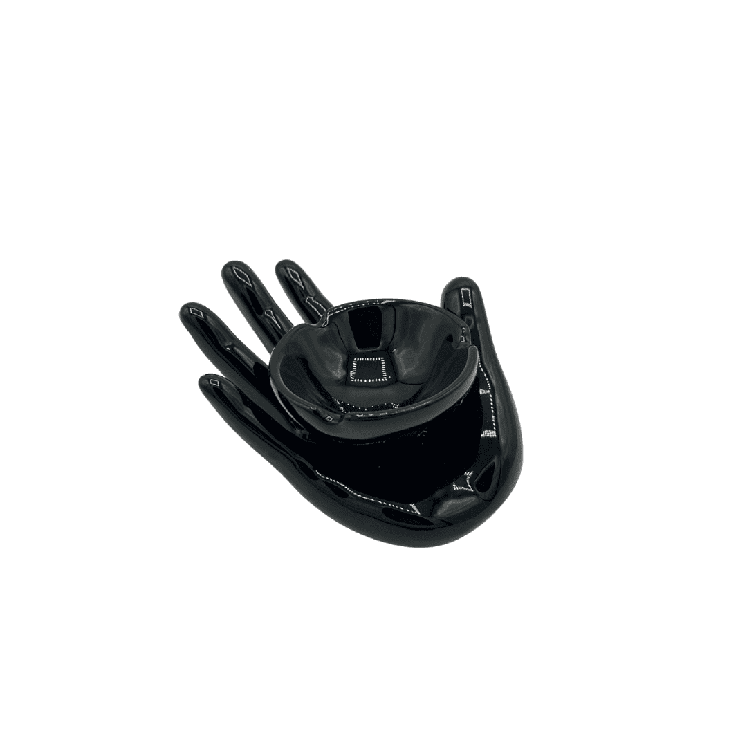 מאפרת קרמיקה בצורת כף יד פתוחה בצבע שחור