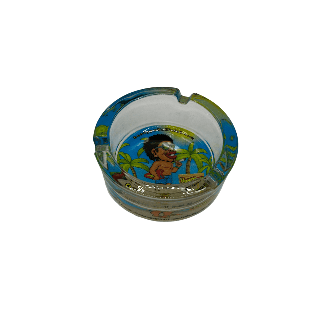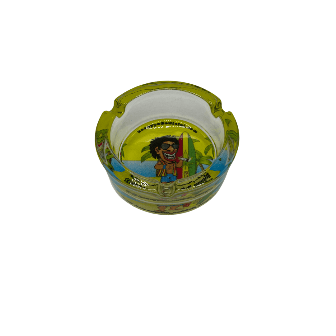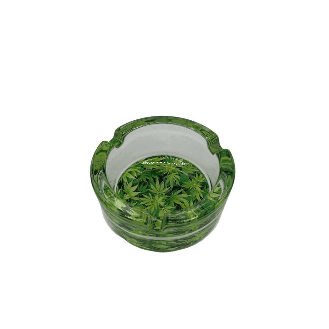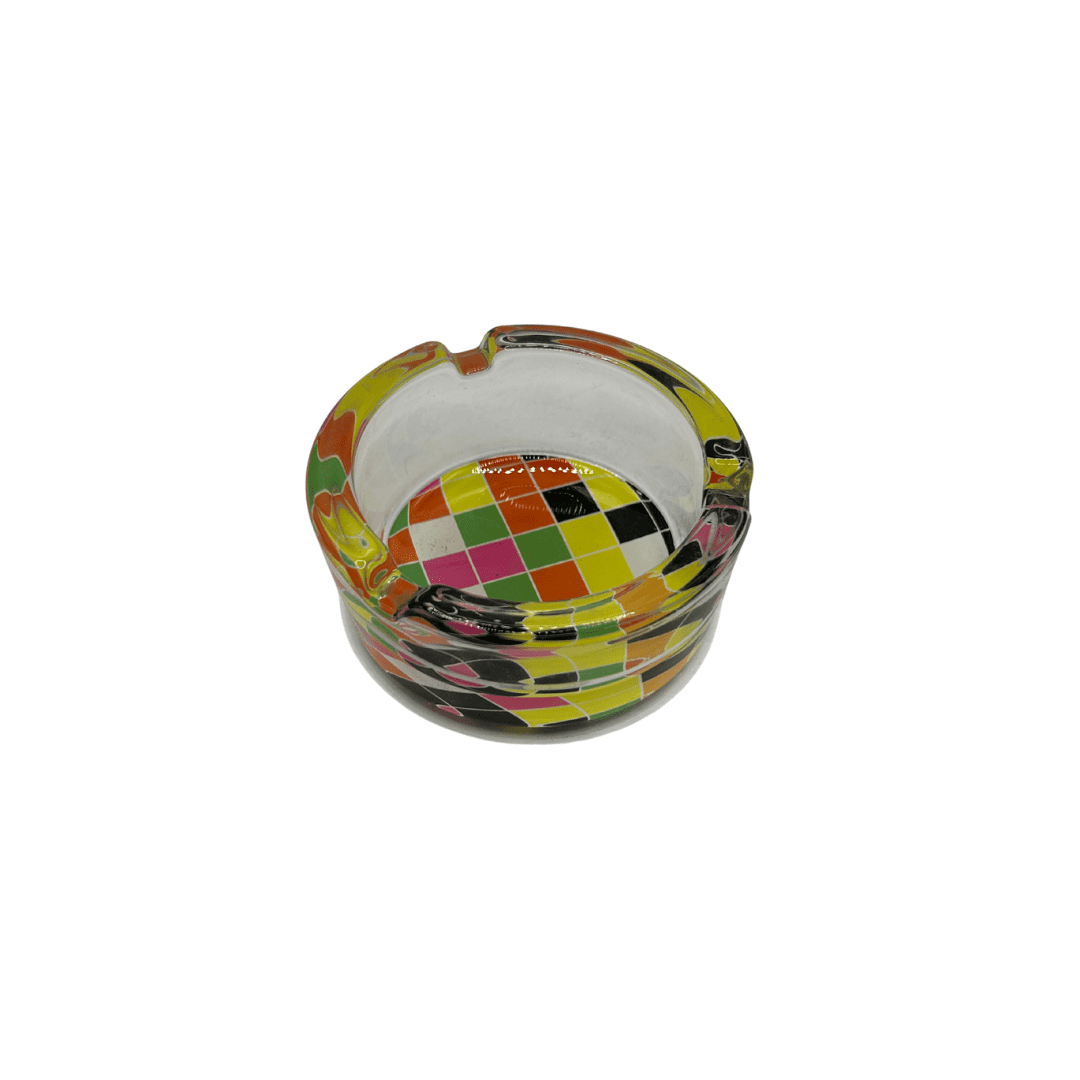 מאפרת זכוכית עגולה במגוון צבעים ודוגמאות שונים