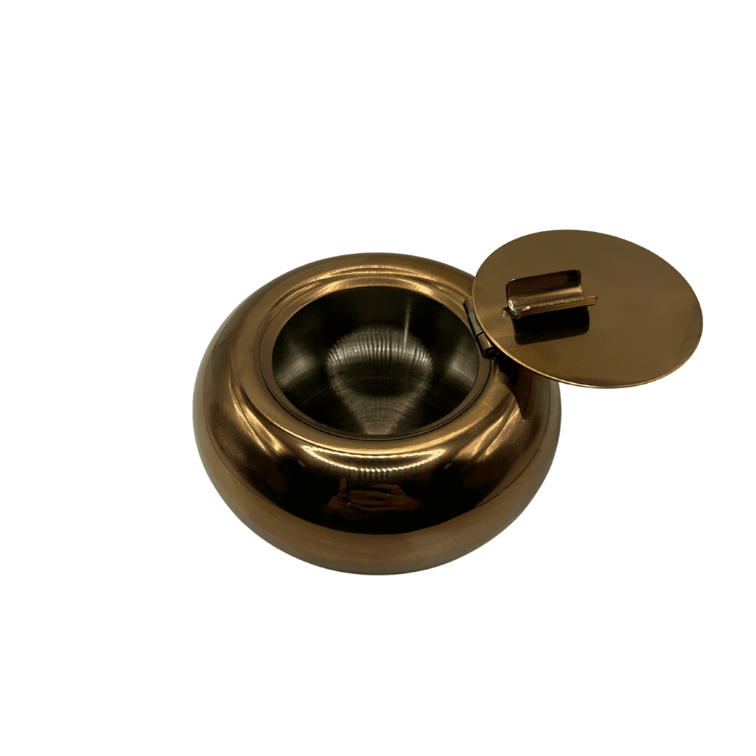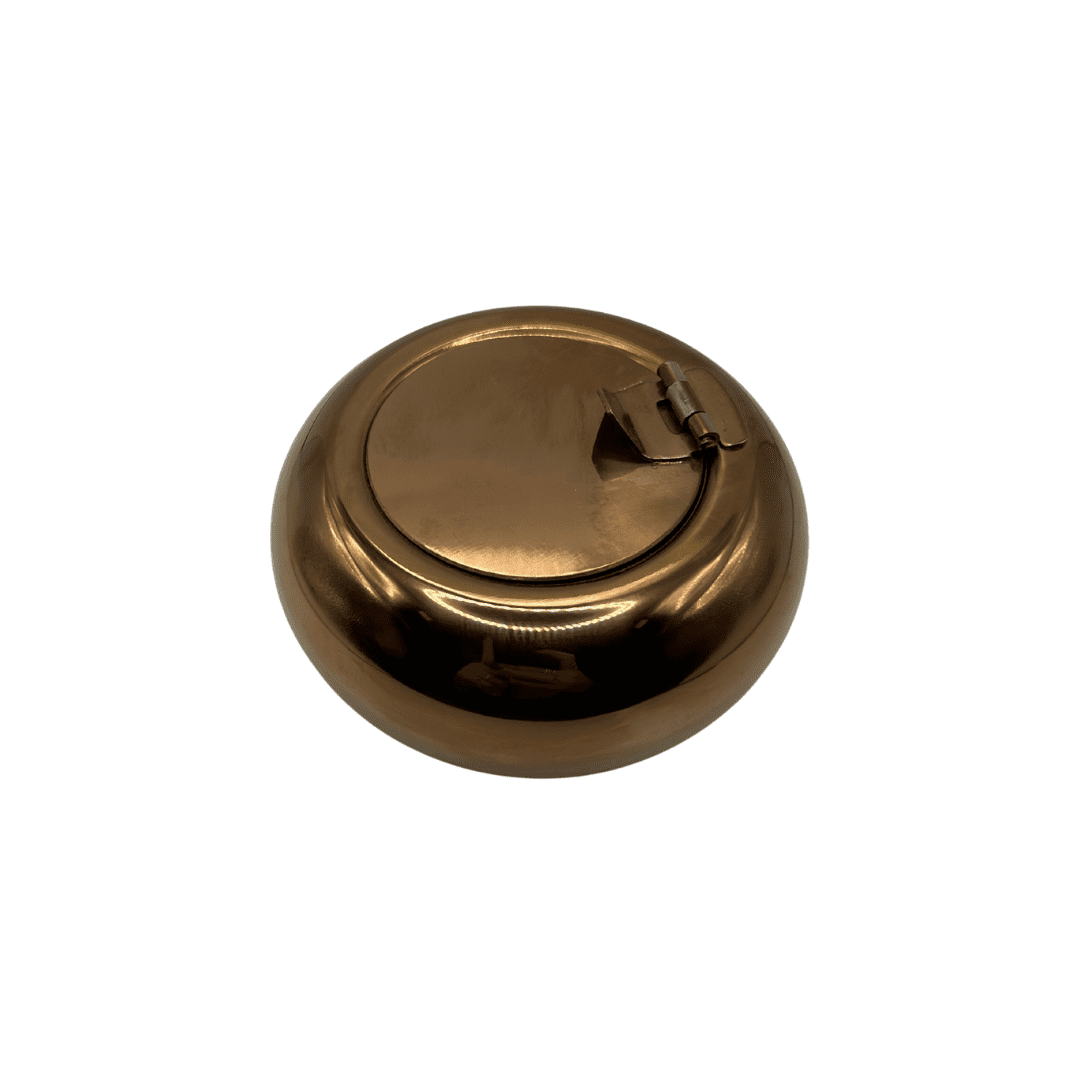 מאפרת מתכת עגולה עם מכסה בצבע ברונזה