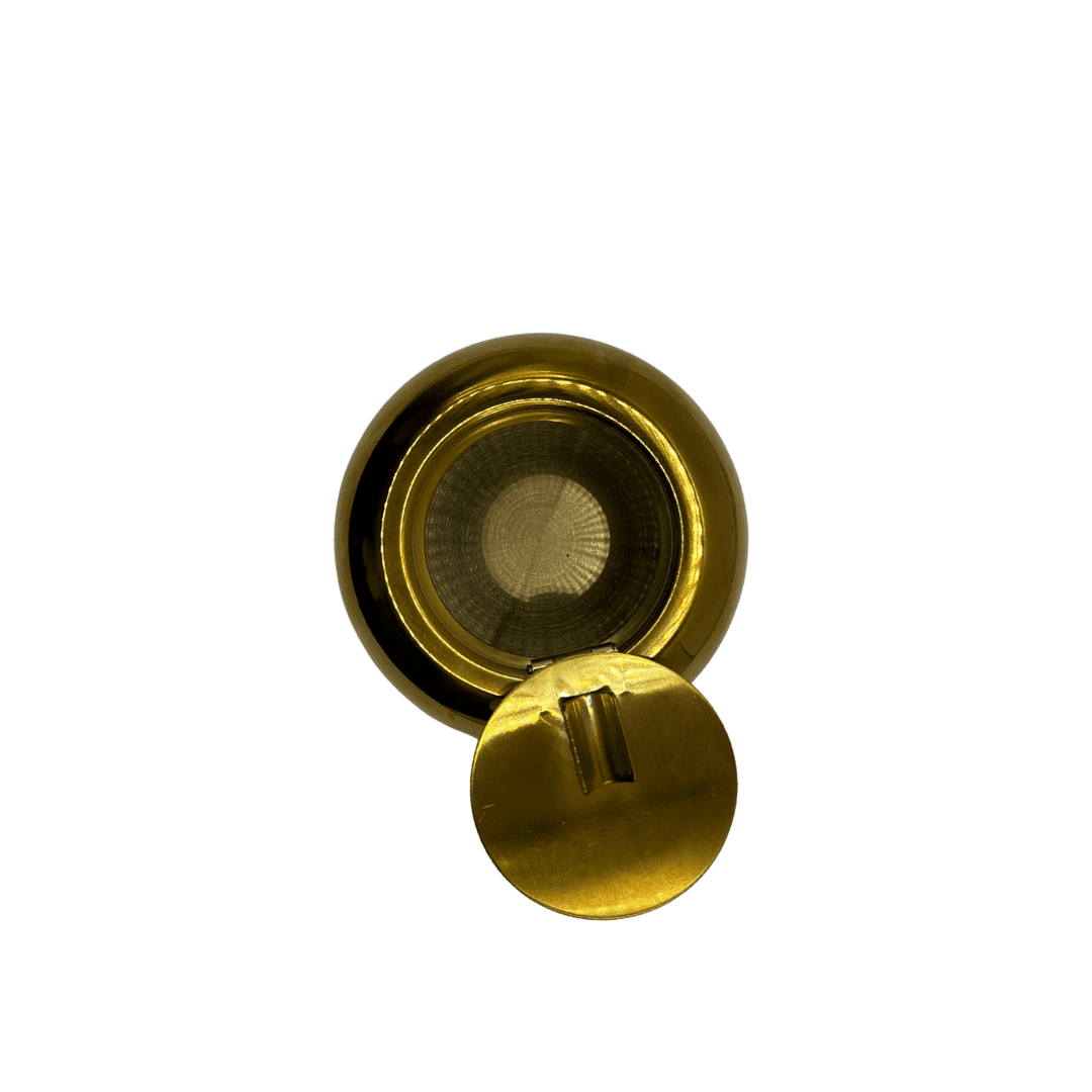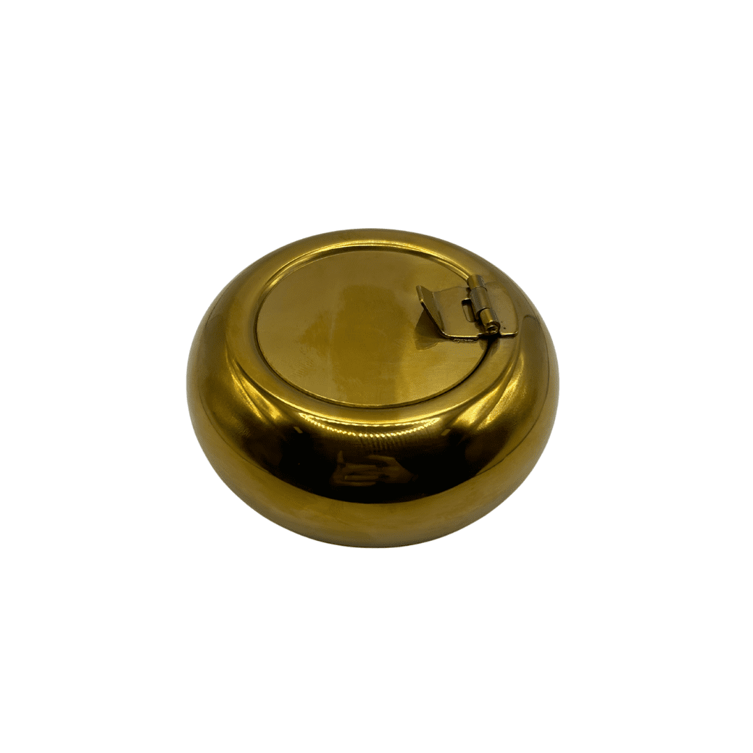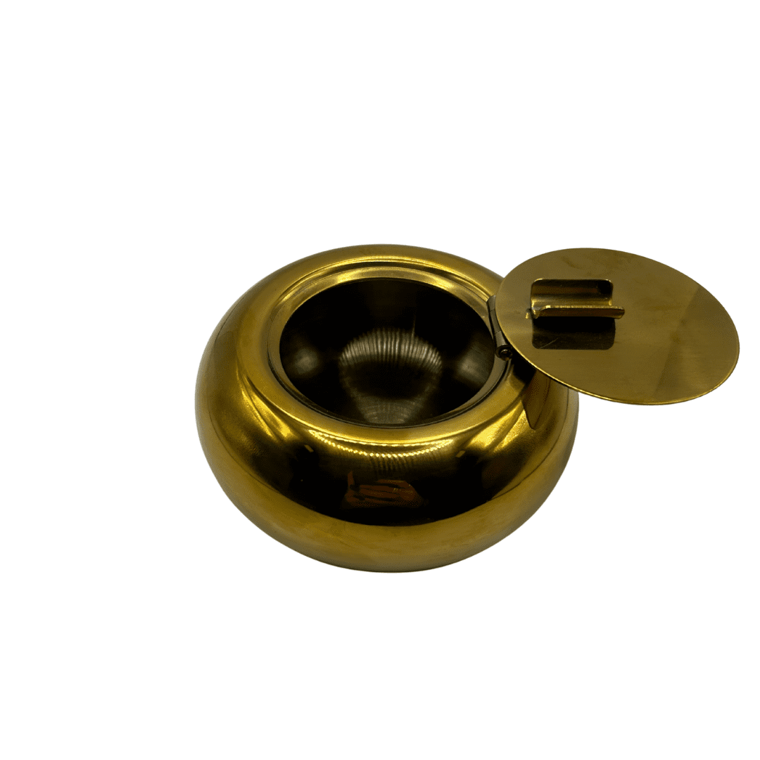 מאפרת מתכת עגולה עם מכסה בצבע זהב