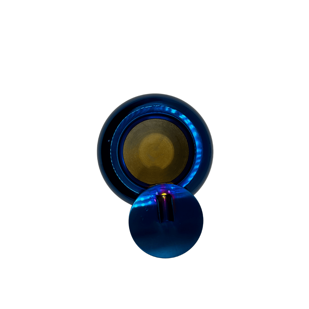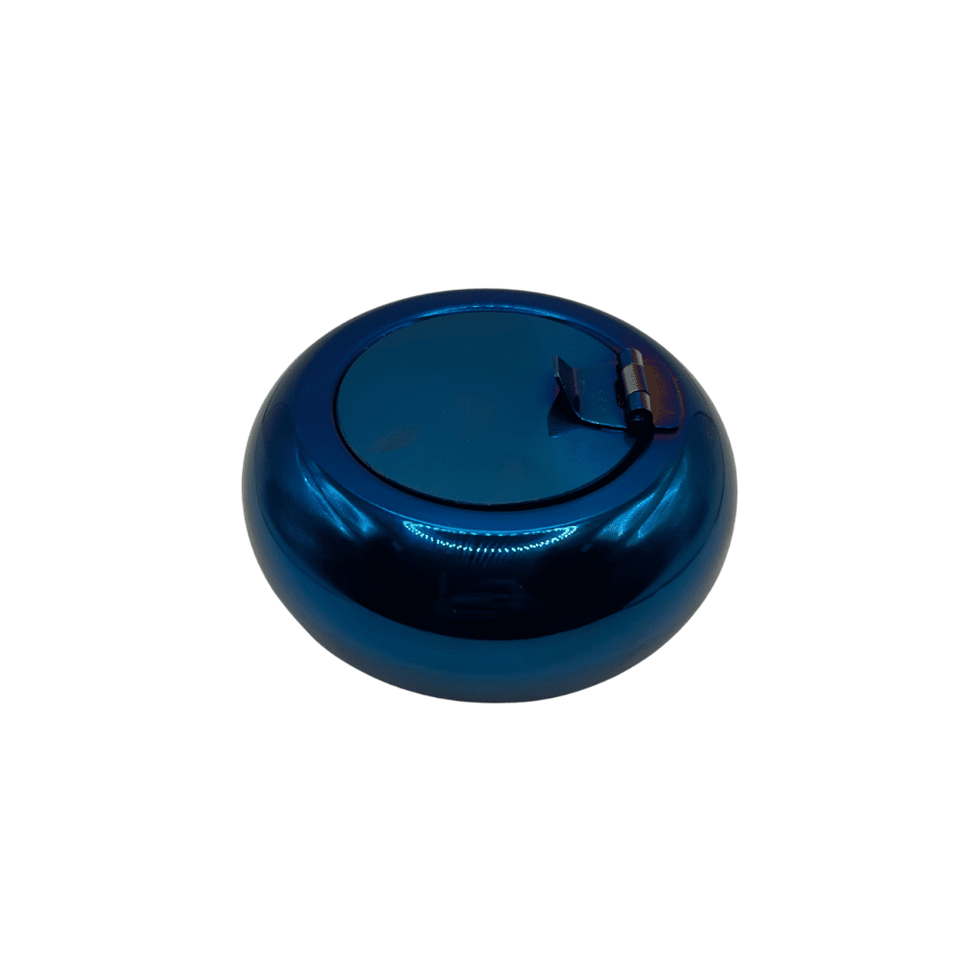 מאפרת מתכת עגולה עם מכסה בצבע כחול