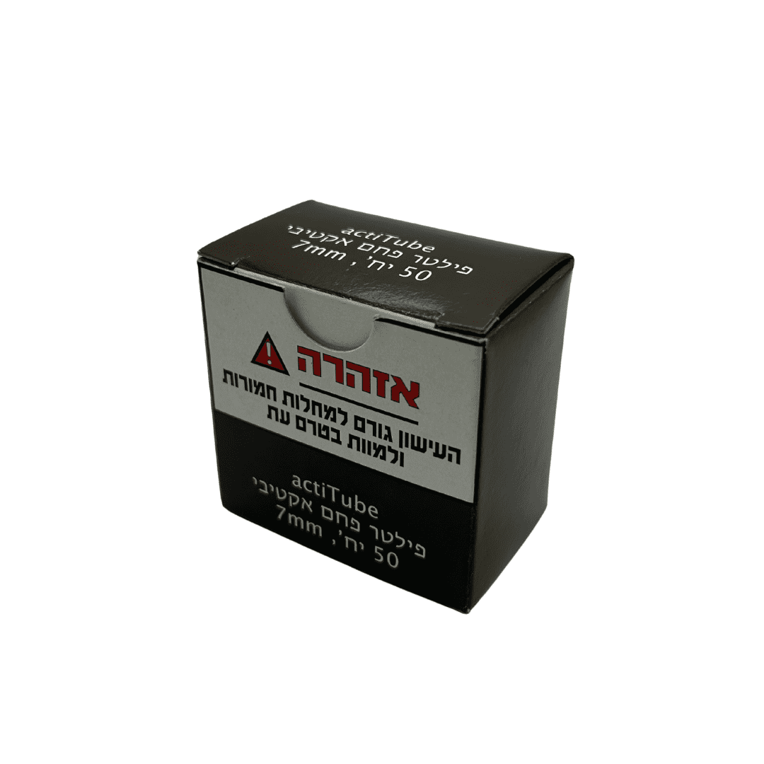 מארז 50 יחידות פילטר פחם אקטיבי בגודל 7 מ"מ לעישון חלק ונקי יותר , מגיע בקופסה קומפקטית .