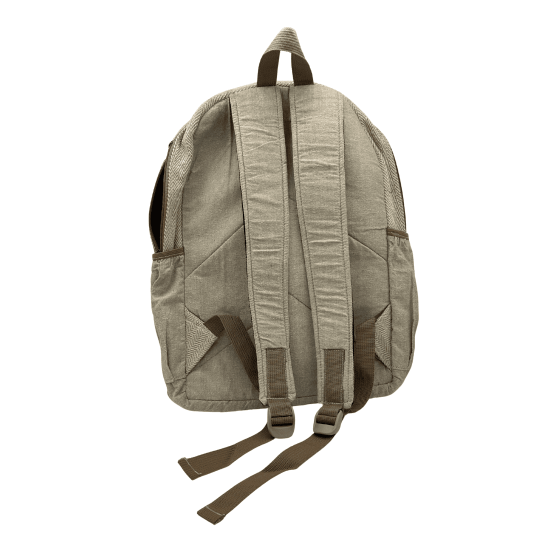 תיק גב גדול עם 5 תאים עשוי המפ בצבע חום שמנת .